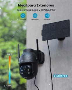 ✓ EN STOCK Cámara de vigilancia exterior 100% solar en elegante color negro discreto con rotación 360° PTZ (355° pan / 120° tilt). Resolución 2K/3MP con visión nocturna a color 15m. Detección IA inteligente para reducir falsas alarmas. Sin cables, sin suscripción – funciona incluso durante cortes de luz. ✅ 5 Razones para Elegir Esta Cámara: 3MP Ultra-Nítido PTZ Motorizado 100% Solar Visión Nocturna Impermeable Sin Suscripción Gracias a la tecnología PTZ motorizada, esta cámara cubre 355° de rotación horizontal y 120° de inclinación vertical. ¡Una sola cámara reemplaza 4 cámaras fijas! Controla la rotación en tiempo real desde la app o activa el seguimiento automático: la cámara sigue los movimientos detectados para no perderse nada. Equipada con 4 focos LED (2 infrarrojos + 2 blancos), esta cámara ofrece una visión nocturna 50% más luminosa que los modelos estándar. 3 modos a elegir: 💡 Consejo: Activa los focos manualmente desde la app para iluminar tu entrada por la noche. El sensor PIR de alta precisión combinado con inteligencia artificial distingue automáticamente: Personas Animales Vehículos Paquetes Recibe solo las alertas relevantes. Ajusta la sensibilidad del 1 al 10 y personaliza las zonas de detección en la app. 💡 Resultado: Hasta un 90% menos de falsas alarmas comparado con cámaras estándar sin IA. Esta cámara funciona completamente con energía solar. El panel integrado recarga la batería continuamente, incluso en días nublados. Batería de respaldo integrada: Durante varios días sin sol, la batería recargable toma el relevo para un funcionamiento continuo. ✅ Ventajas de la alimentación solar: Cuando se detecta una intrusión, activa 3 tipos de alarmas para ahuyentar a los intrusos: Activa la alarma manualmente desde la app o configura la activación automática cuando se detecte movimiento por la noche. Imagen ultra-nítida 2304×1296 píxeles para identificar caras y matrículas. Rotación 355° pan + 120° tilt, control en tiempo real o seguimiento auto. Autonomía ilimitada, batería de respaldo, funciona sin corriente. 4 LED (2 IR + 2 blancos) para visión a color incluso de noche. Reconocimiento personas/animales/vehículos, 90% menos falsas alarmas. Micrófono + altavoz integrados para comunicarte a distancia. Sirena potente + foco para disuadir a los intrusos. Integración Echo Show/Fire TV, control por voz de tu vigilancia. No necesitas electricista. No hay cables que pasar. Instala tu cámara tú mismo en pocos minutos: Descarga la app ieGeek Cam en iOS/Android, crea una cuenta. Conéctala al WiFi Escanea el código QR, conecta a tu red 2.4 GHz. Fija la cámara Atornilla el soporte o usa el adhesivo 3M incluido. ¡Listo! 📦 Todo incluido: Soporte de pared + tornillos + tacos + adhesivo 3M + cable USB + manual en español + guía de inicio rápido. A diferencia de Ring (40-100€/año obligatorio) o Arlo (hasta 130€/año), la cámara ieGeek funciona sin cuotas mensuales. La app ieGeek Cam es 100% gratuita. Almacena tus vídeos en local con tarjeta SD (hasta 128GB) o disfruta de 7 días de nube gratis. Tú eliges, sin compromiso. 💸 Ahorros vs suscripciones de la competencia: Sí, esta cámara es 100% autónoma gracias al panel solar integrado. La batería de respaldo entra en funcionamiento si hay varios días consecutivos muy nublados. También puedes recargarla manualmente mediante el cable USB incluido si es necesario. Con sus 2 antenas de 5dBi, la cámara ofrece una conexión estable hasta aproximadamente 20-30 metros del router según los obstáculos (paredes, vegetación). Solo funciona con WiFi 2.4 GHz (no 5 GHz). Sí, la app ieGeek Cam (gratuita en iOS y Android) te permite ver el vídeo en directo, controlar la rotación PTZ, recibir alertas y hablar mediante el audio bidireccional, estés donde estés. Sí, con su certificación IP66, la cámara resiste lluvia intensa, nieve, heladas y polvo. Funciona entre -20°C y +50°C, perfecta para todas las estaciones en España. El sensor PIR detecta el movimiento, luego la inteligencia artificial analiza la imagen para distinguir personas de animales, vehículos o ramas moviéndose. Puedes ajustar la sensibilidad del 1 al 10 en la app para personalizar las alertas. Sí, la cámara acepta tarjetas microSD de hasta 128GB (no incluida). Es la opción ideal para almacenamiento local sin costes. También tienes 7 días de nube gratis incluidos. Sí, es compatible con Amazon Alexa. Puedes ver el vídeo en tu Echo Show o Fire TV con el comando de voz “Alexa, muéstrame [nombre de la cámara]”. El manual en español está incluido en la caja. También puedes descargarlo desde la app ieGeek Cam o contactar con el servicio de atención al cliente que responde en 24 horas en días laborables. El color negro ofrece varias ventajas: es más discreto en fachadas oscuras, verjas o muros de piedra. Se integra mejor en el entorno nocturno y tiene una estética moderna que armoniza con la mayoría de arquitecturas. La elección ideal para una vigilancia discreta. 💡 Nuestro veredicto: La cámara ieGeek ZY C2 ofrece la mejor relación calidad-precio con panel solar integrado, rotación PTZ completa y sin suscripción. Ring sigue siendo la referencia en calidad de software pero exige cuotas mensuales elevadas. 🎯 Nuestra recomendación: La cámara ieGeek solar 360° en negro es ideal para una vigilancia discreta en fachadas oscuras, verjas o muros de piedra. Perfecta para presupuestos ajustados que buscan una solución completa sin suscripción. Sustitución gratuita si se detecta algún defecto. No satisfecho = reembolso completo. Equipo técnico reactivo en días laborables. Envío en 24-48h a toda España. 💡 Nota: Tarjeta microSD no incluida. Recomendamos una tarjeta de 64 o 128GB clase 10 para un rendimiento óptimo. Cámara 100% solar en negro con rotación 360° – Sin cables, sin suscripción ✓ Garantía 2 años • ✓ Devolución 30 días • ✓ Enví
