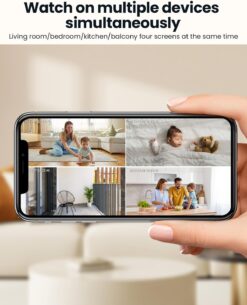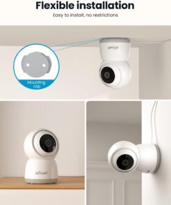Cámara de vigilancia interior 2K/3MP con WiFi dual-band (5GHz + 2,4GHz) para conexión ultra-estable. PTZ 360° motorizado con seguimiento automático inteligente y visión nocturna 15m. Ideal para vigilar bebé, mascotas, personas mayores.
